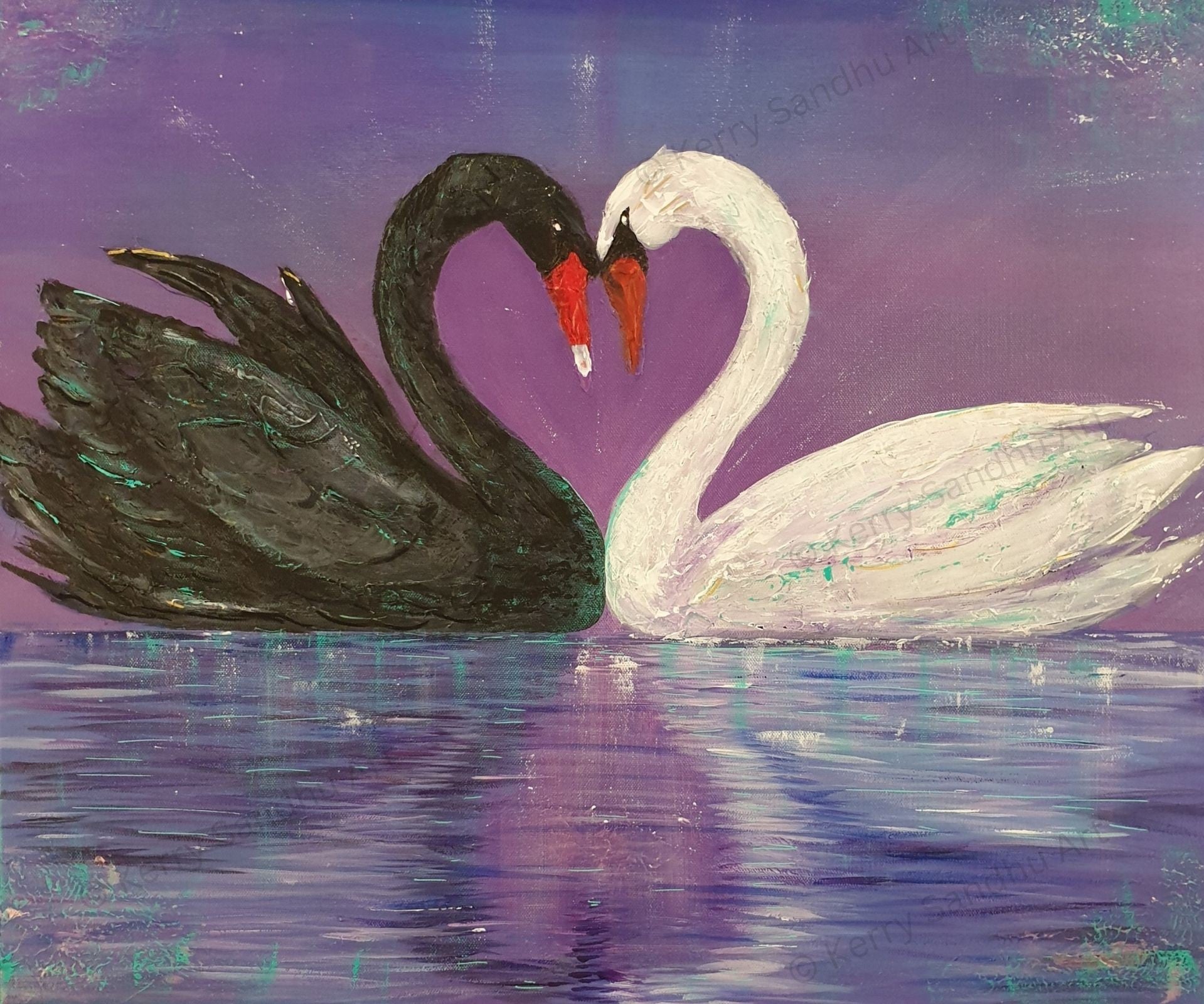 This painting is full of beautiful cool and calming colours and also some bold textures within the swans.